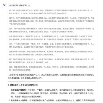 孩子寒假有个阅读《骆驼祥子》的任务,不明白如何归纳这本书的主体思想股票配资合同,来问我,我顺手在 deepseek 里提问,使用了深度思考,看看 deepseek 大模型给出的答案,反正我是写不出这样的答案。